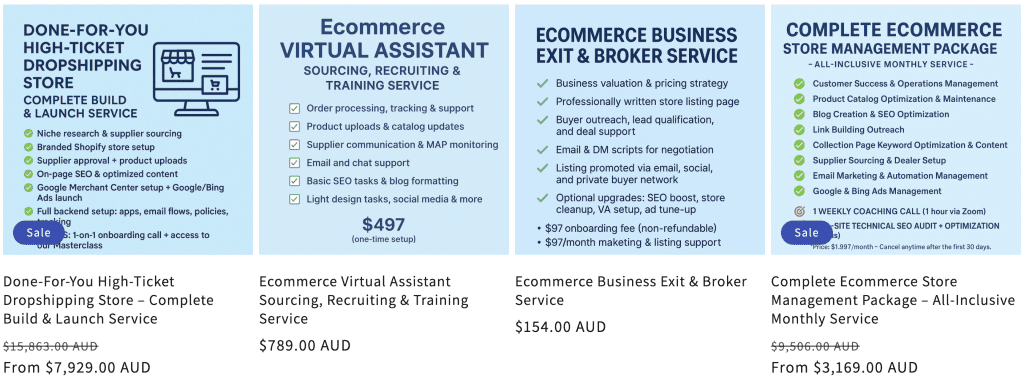 | Done-For-You High-Ticket Dropshipping Store – Complete Build & Launch | $15,863.00 | From $7,929.00 |